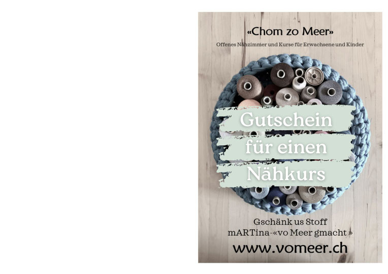 Ein schnelles Weihnachtsgeschenk: Drucke den Gutschein für deinen Nähkurs aus! Du kannst es gleich als Karte falten. Verschenke ihn. Abgerechnet wird erst bei Kursbesuch.